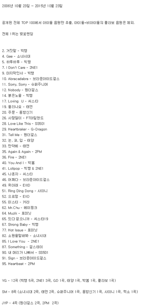 9년간 엠넷닷컴에서 가장 사랑 받은 아이돌 음악들