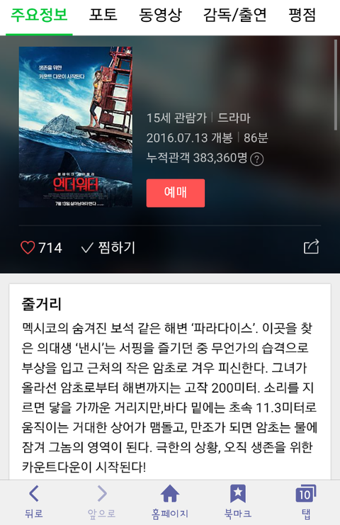 영화 '언더워터'를 예매했는데