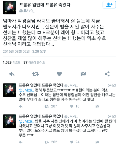 연습생 때부터 많이 사주고 잘챙겨줬대