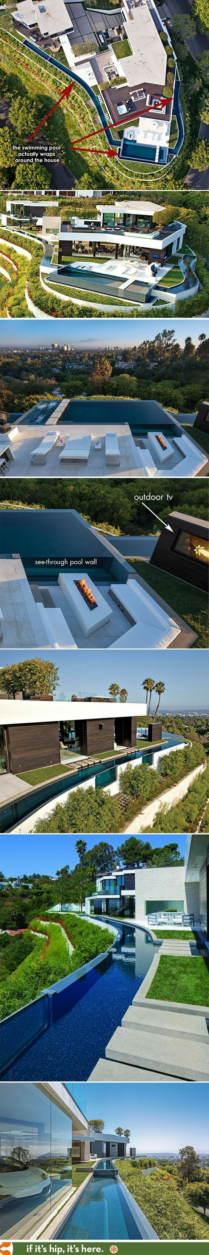 긴 풀장이 있는 집