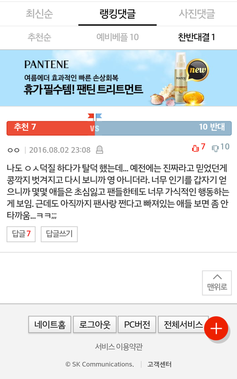 탈덕하는척하는년 댓글이 찬반임 반대 ㄱㄱ