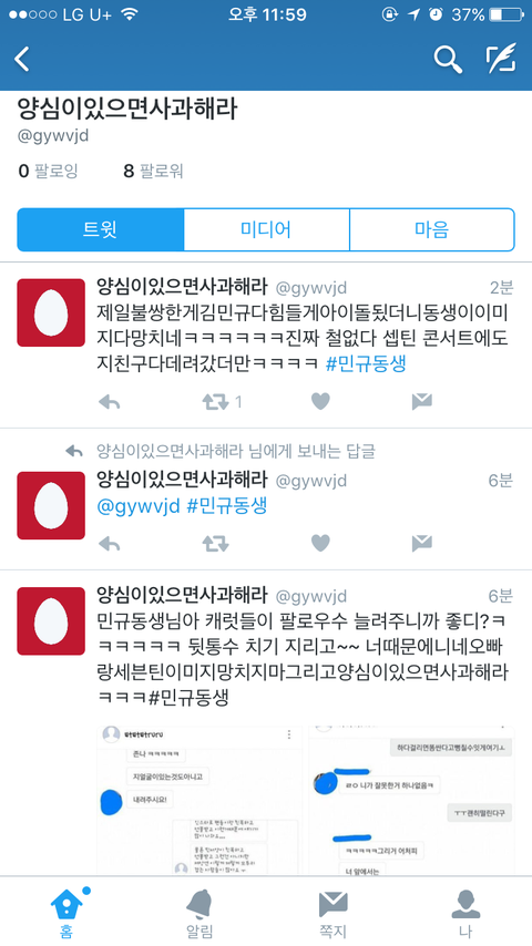 이왕 이렇게 된거 이제 오빠나 오빠팬들 우습게 보지 않앗으면