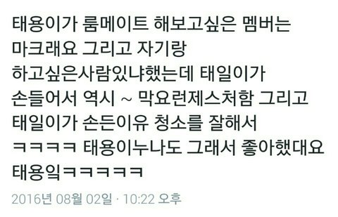 생파 후기3) 태용이 룸메하면 좋은 점!