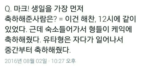 유타 자고있음 -> 중간에 일어나서 같이 축하ㅎ