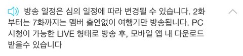 2화부터 7화 까지는 멤버들 출연이 없다고 했는데