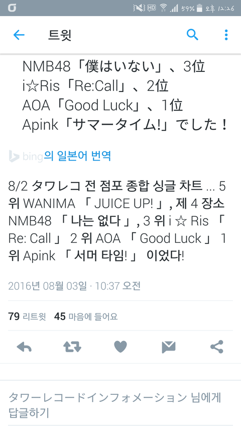 에이핑크 aoa일본 순위