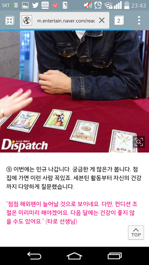 이거 전에 스타1캐2스트에 올라온 애들 타로점 갔을 때 기사인데