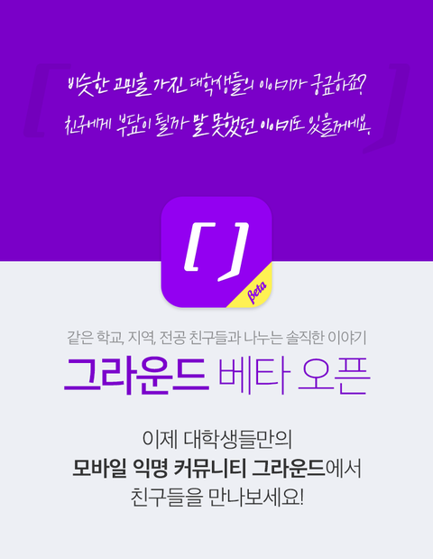 이제 모바일로 같은 학교, 지역, 전공의 친구들과 솔직한 이야기를 나누세요.