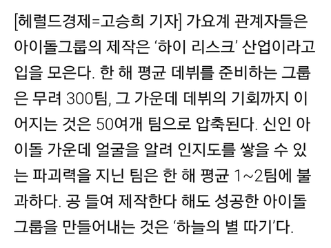방탄은 대형 기획사 출신도 아니고 서바이벌 프로그램에서 뜬 경우도 아니었잖아...물론 지금은 방탄 데뷔 때보다 더 신인들이 살아남기 어렵게 되긴 했지만...여튼 대형 기획사 소속 이외에는 많이 뜨기 어려운 게 사실인 듯...근데 이렇게 천천히 천천히 성장하고 있는 게 너무 대단하다ㅠㅠ우리 막 3대 기획사 제외한 중소돌 최초로 한 거 되게 많잖아ㅠㅠ초동 10만 넘은 거랑 빌보드 200든 거, 월드앨범차트 1위 최다로 많이 한 거, 1위 역주행 한 거 등등...너무 대단해ㅠㅠ