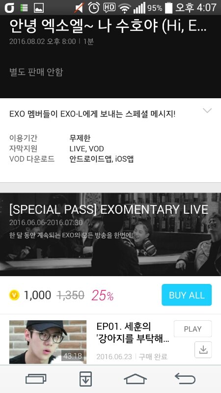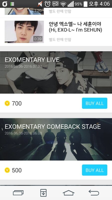 위에 엑1소멘터리 라이브랑 아래 1000코인짜리 중에 뭐사야돼?? 뻥치면 판판이랑 결혼골인!!!!