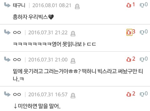 이거쓰니까 이상하게 반대수가많았고 거기에 한 ㅇㄱㄹ가 이런댓글닮