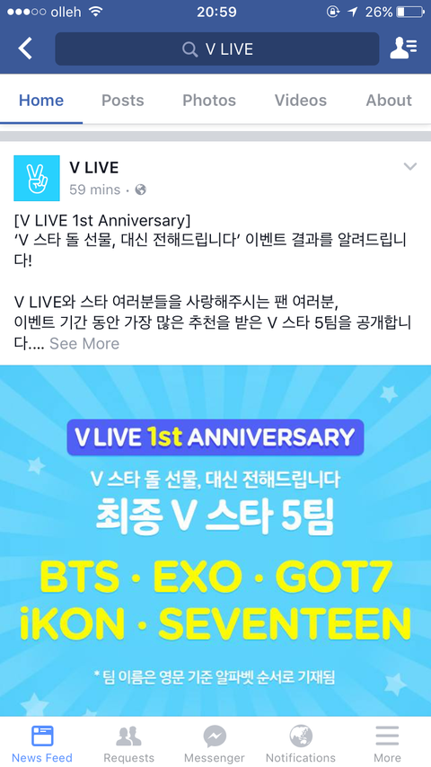페북 들어가서 V ㅂ어뎌ㅗ바어 LIVE 라고 치면 떠! 그거 들어가면 (ㅂ어뎌ㅗ바어 이거 빼야하는거 알제?)