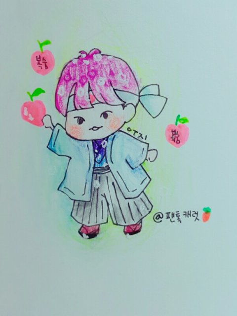 복숭아 그리다가 지훈이가 복숭아동자라면..!?!?이런 생각이들어서 급 그려봤어ㅋㅋㅋㅋ곰손이라서 잘 그리지못해 미아내..!!8ㅅ8