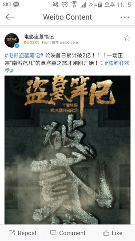 중국영화사상 역대 흥행수익 3위 기록 ㅠㅠ