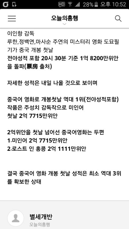도묘필기 개봉 몇시간만에 누적수익 1억위안돌파 ㄷㄷ