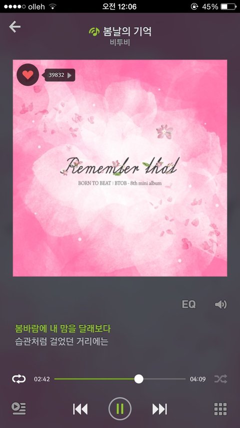 지금은 봄날의기억 듣고있지 다들 ?? 스밍목록맞게 해야돼 ~!!!