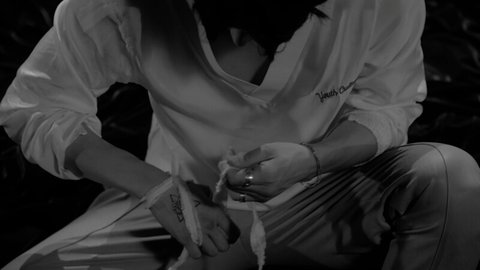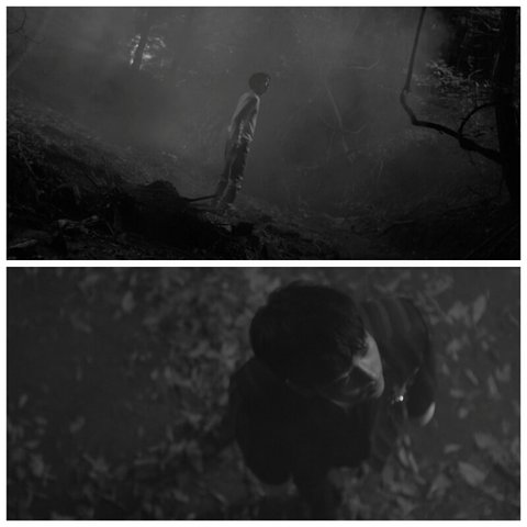 어둠속에 혁과 대비되는 밝은 빛속의 라비