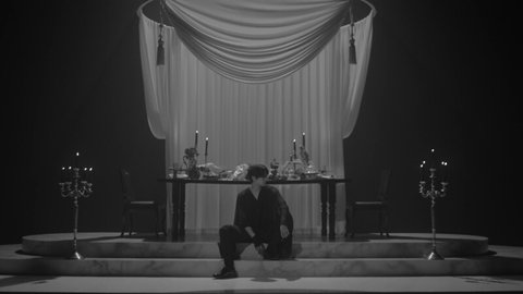 만찬이준비되었지만 텅비어있고 혼자외롭게있는 레오