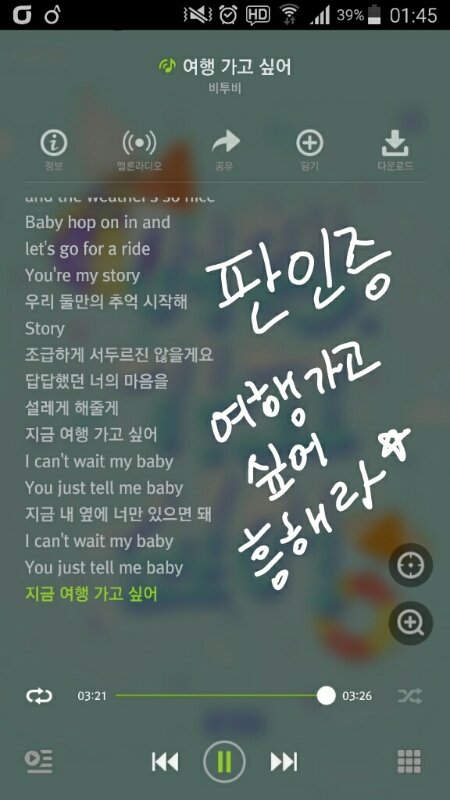 타팬인데 오늘6일에 비툽 여행송나온다고해서 기다리다가 듣고 스밍인증남기러왔어ㅎㅎ