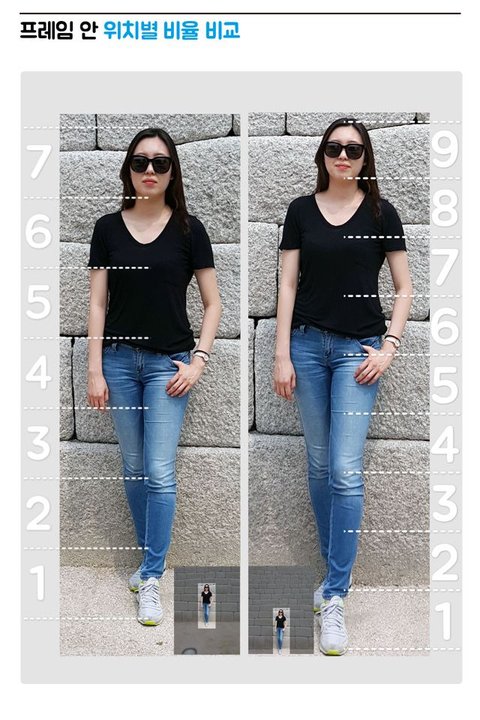 (사진의 각도와 자세, 헤어스타일 등의 요인으로 약간의 오차는 존재)