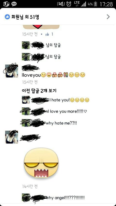그 필리핀 여자가 댓글을달고 사랑 한다는둥 스티커도 남기고 난리더라구요 .. 전몰랐는데 친구가 말해줬는데 그여자 타임라인에도 사랑한다고 전남친이 써놨고... 지금 너무화가나고.. 슬프네요,,