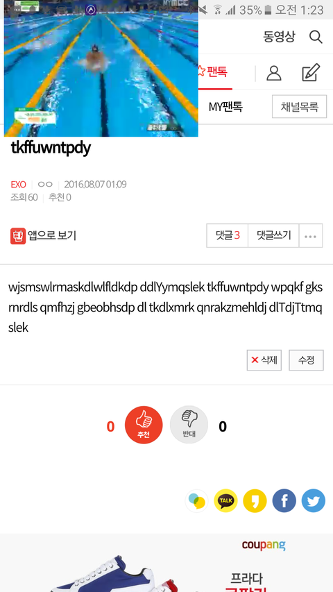 난 수영선수들 헤드폰끼고있을 때 궁금함