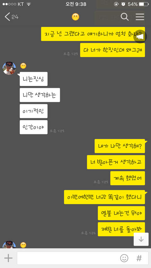 저는 왜 너가한 전에 일은 생각 안하고 싸우기만 하냐 제발 너가 전에 한일좀 생각해라 이거고