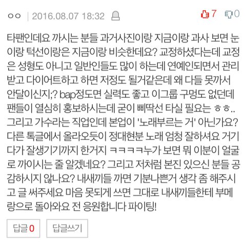 엔터톡에 어그로들 보려고 갔는데 이 댓글 써주신 분 넘나 감사..우리애들 알아봐주시는 듯 ㅜㅜ 타팬들도!!