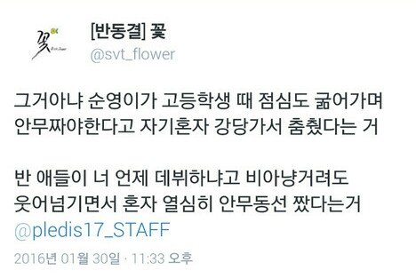 팬여러분 저도 세븐틴 잘되길바라는 한사람이고 항상응원하고있습니다. 여러분들과 같이 이친구들이 무대위에서 빛을발하면 저역시 너무나도 기쁘고 보람느낍니다. 오해가 없어졌으면 하는 바램입니다.