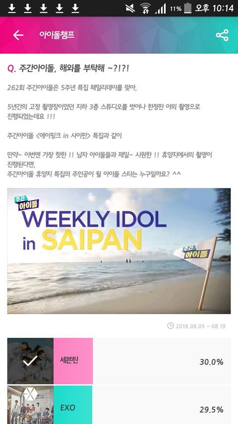 첫화면에 주간아투표누르고