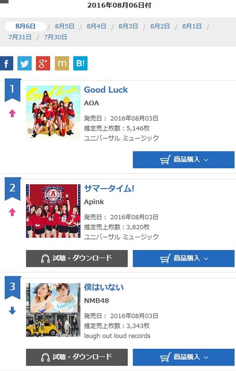 AOA 오리콘 일간차트 1위