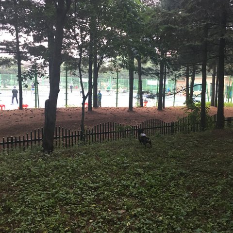 테니스장 주변으로 넘어온 공들을 귀신같이 찾아서 물어와요 (공은 다시 그자리 그대로 두고 옵니다ㅎㅎ)