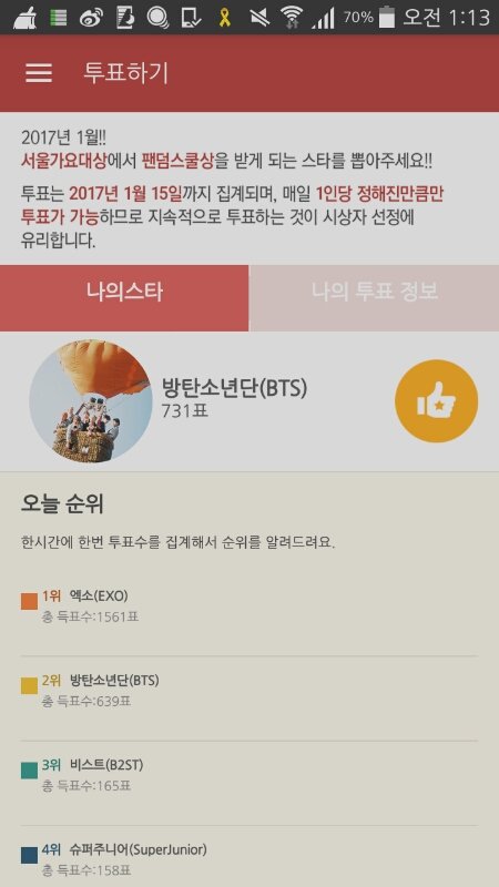 이건 쑈챔 활동기때 투표할 수 있고 주간1아2이돌 투표도 할 수 있고! 올라오는 투표에 애들있으면 눌러주면 돼