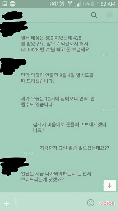 아무리 생각해도 자기는 억울하다면서, 428불만 준 저희 (저랑 제 룸메이트)가 괘씸하다면서요.