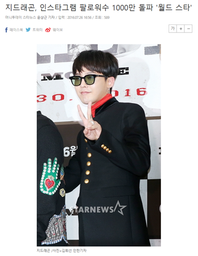 이번에 지디 인스타 팔로워 1000만명 돌파했다던데 ㅇㅇ…