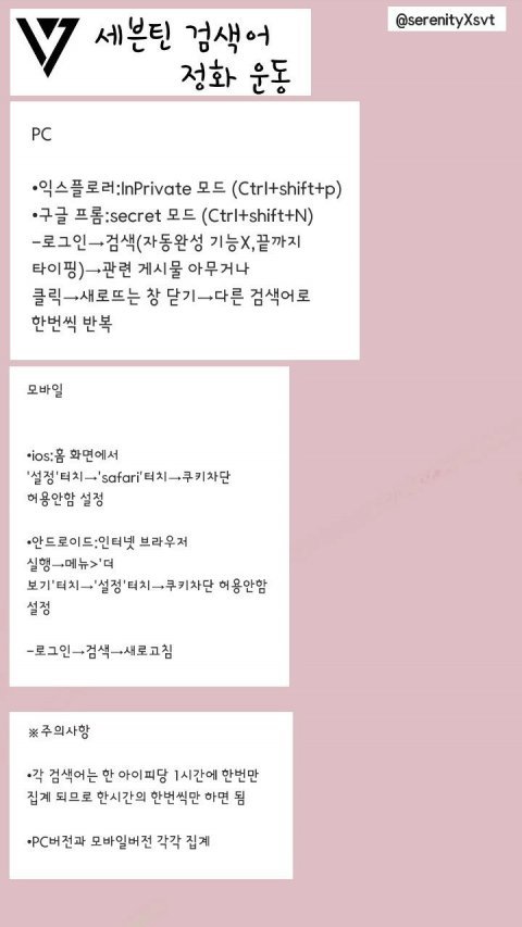 캐럿떨 익히 알고있겠지만 요새들어 세븐틴 연관검색어에 음지성문화가 많이 보이고 있어. 초록창에 세븐틴 그룹명만 쳐도 연관검색어에 ㅂㅇㄱ이나 ㅍㅍ같은 음지성 문화들이 바로 보이거든. 멤버들이 그룹명도 검색해보고 할텐데 음지문화를 안 봤을 가능성이 적지만ㅜㅜ