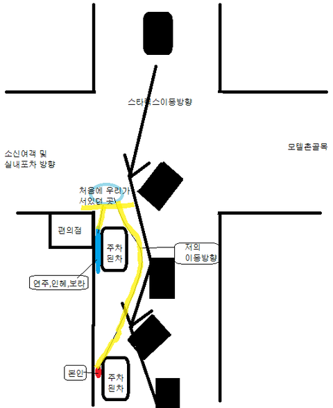 좌측에는 소신여객 옆으로 실내포장마차가 쭉 있는 길이였고 우측에는 모텔들이 즐비해있었고