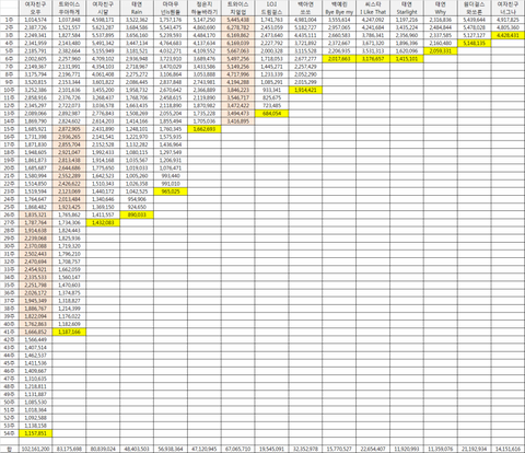 b.원더걸스나 씨스타는? 이러는 댓글이 있길래 걸그룹(솔로포함) 스밍성적 가져옴