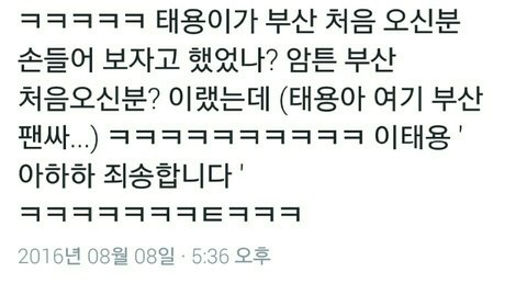 글에는 '부산 처음 오신분?' 으로 되있는데 원래는 '부산 처음 오신분?' 이라고 말하려다 그냥 "부산 오신분?" 이라고 말해서 팬들이 빵터진 듯?