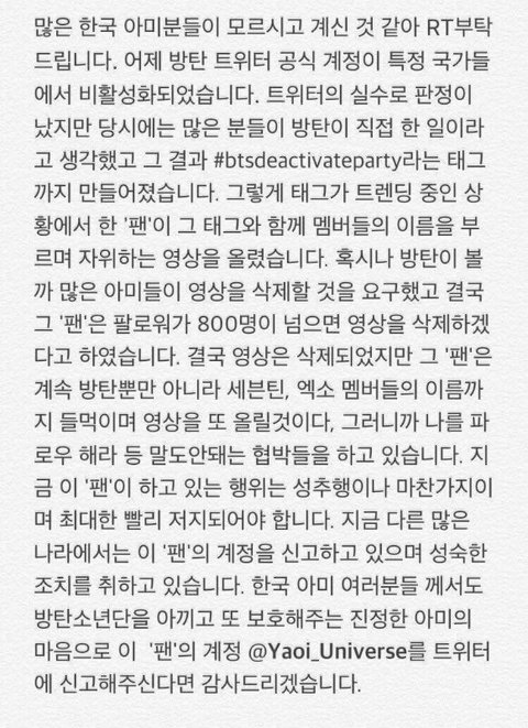 방!탄!소!년!단!파는 친구가 알려줘서 나도 알았어 이미 일터진건 그쪽 분들이고...안좋은일 안일어나게 먼저 신고해버리자!ㅝ ㅡㅜㅠㅠㅠ