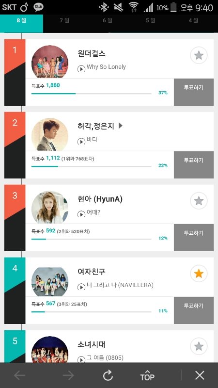 1인당 하루에 세표씩 매일매일 가능함 1위시켜주자!! 다들 활동끝나고 얼마동안은 스밍돌리는거 잊지말구! 위에분이랑 표차이 얼마안난당 힘눼 여친1위는 버디가 책임진당..!!오그리