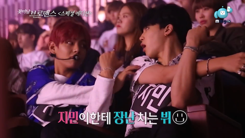 뷔가 지민이 놀리는듯한? 제스처함
