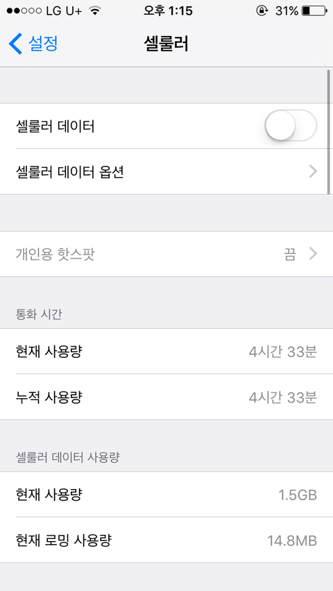 이거 처음 쓸때 엄청 엄청 불편했음 물론 지금도 불편.. 뭐냐면 데이터를 키거나 끌때 보통 안드로메다폰은 상단을 내리면 데이터, 와이파이 , 블루투스, 비행기모드 이런거 다있잖아 근데 아이폰은 데이터만!!!!!!!데이터만 설정에 들어가서 꺼야돼!!!!!!!!!!!셀룰러!!!!!!