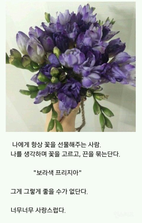 이거 트와이스 채영이 올린글 이란데 보라색 프리지아는 좋아하는 지인?이 준거 같고 분홍색 꽃은 팬이 준것나는데 팬이 준 꽃 비교하는거 같다고 팬 기분 나쁠거 같다고 그러는데 나는 글이 이해안감 무슨뜻임?