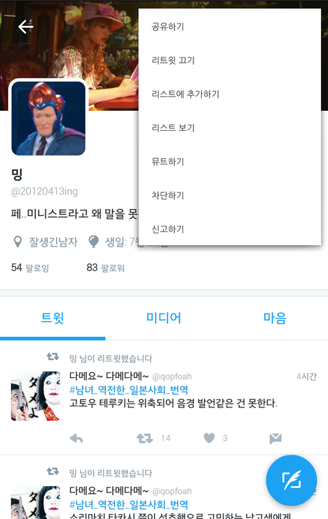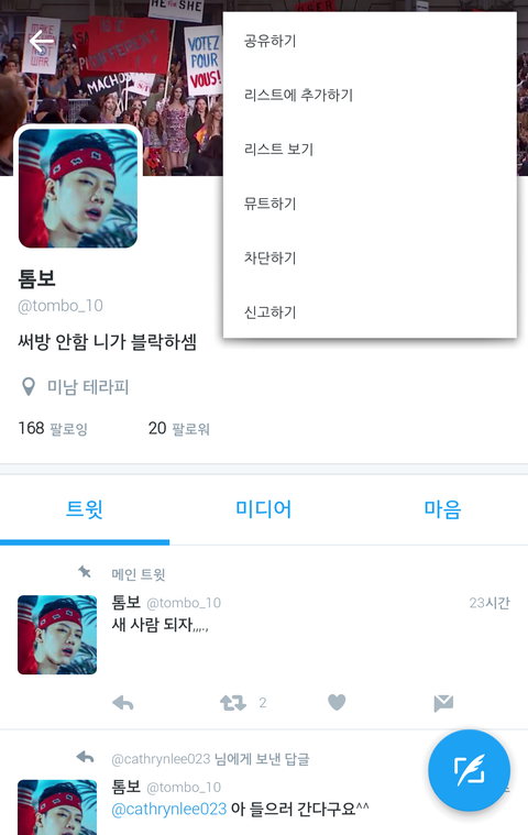 얘들아 그냥 대꾸하지 말고 계정 신고 한 번씩 눌러줘