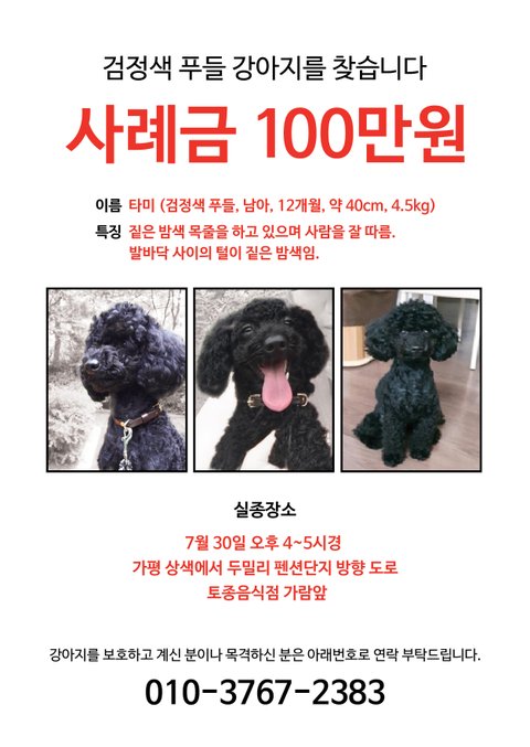 검정푸들 찾아요(가평에서 잃어버렸어요)