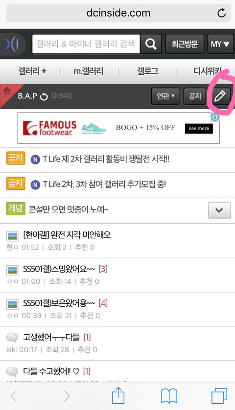 스밍돌린가수갤에 들어가고 글쓰기를 눌러