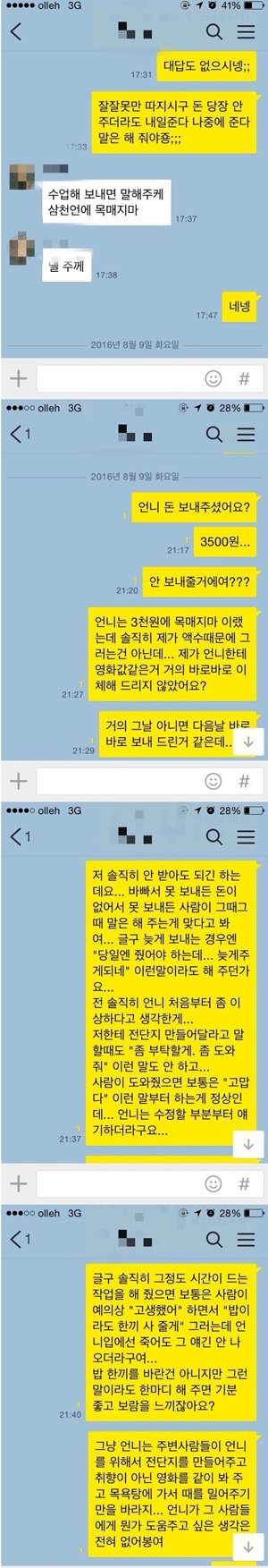 제가 3,500원 보내 달라는게 그리도 거슬렸어요?