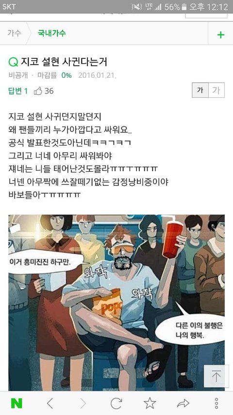 페이스북이나 네이버기사에 보면 다른사람보다도 지코 좋아하시는분들이 지코 욕먹이시고 그것도 모자라서 직접 지코한테 욕하시는거 팬으로써 보기 불편합니다