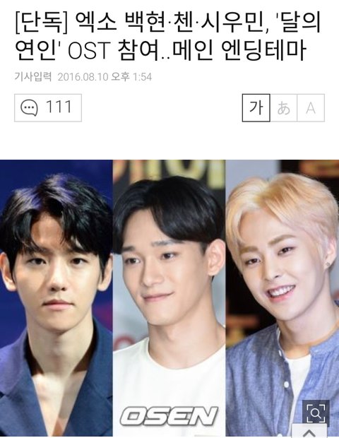 시우민 보보경심 메인엔딩테마 오스트부른당ㅠㅠ(첸백시)